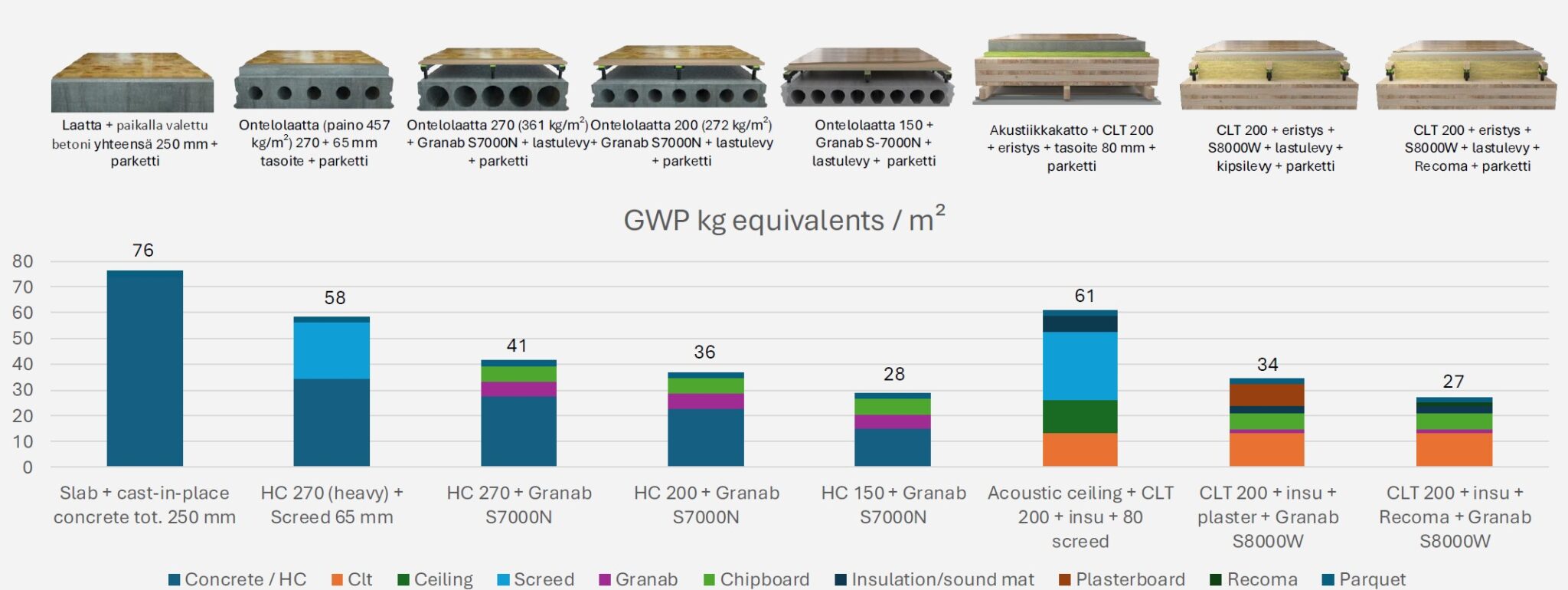 Granabin lattiajärjestelmät ovat ympäristösertifioituja ja RISE (entinen SP Technical Research Institute of Sweden) on suorittanut niillä laajat kestävyystestit. LCA-raportit ja EPD:t ovat saatavilla kaikista järjestelmistä.