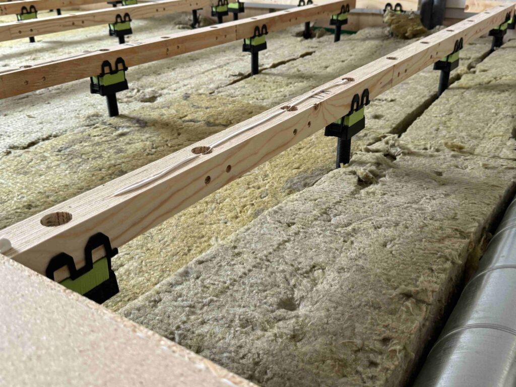 Suosittelemme kuitenkin, että ilmoitat meille, mitä eristemateriaalia aiot käyttää, sillä eristeen tiheys voi vaikuttaa koko lattiarakenteen akustisiin ominaisuuksiin.